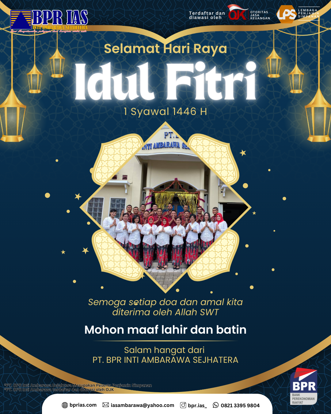 Segenap jajaran Komisaris, Direksi & Karyawan PT. BPR Inti Ambarawa Sejahtera Mengucapkan Selamat Hari Raya Idul Fitri 1446 H, Mohon maaf lahir dan batin. Semoga keberkahan selalu menyertai kita semua.